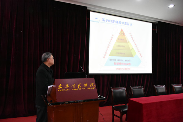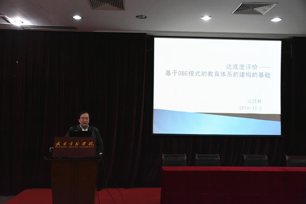 吴昌林常务副校长以《达成度评价——基于OBE模式的教育体系的建构的基础》为题,对OBE模式、OBE模式的教育体系、毕业要求达成度(学生学习成果)评价等理念进行了概述,并分析解读了机电院两轮试点工作的具体内容和结果。