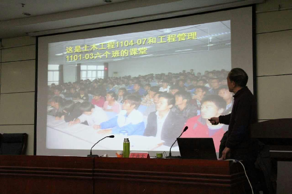 于教授结合自己长期讲授《土木工程概论》课程的心得体会,分别阐述了工程教育专业认证与大工程观应如何指导课程建设,如何做到先进教育理论和工程教育实践结合,以及讲授《土木工程概论》这一省级精品资源共享课程的教学经验和教学效果。报告进行了近两个小时,受到与会老师的一致好评。