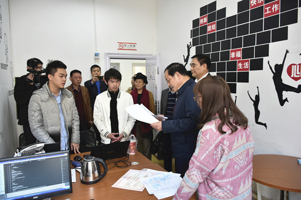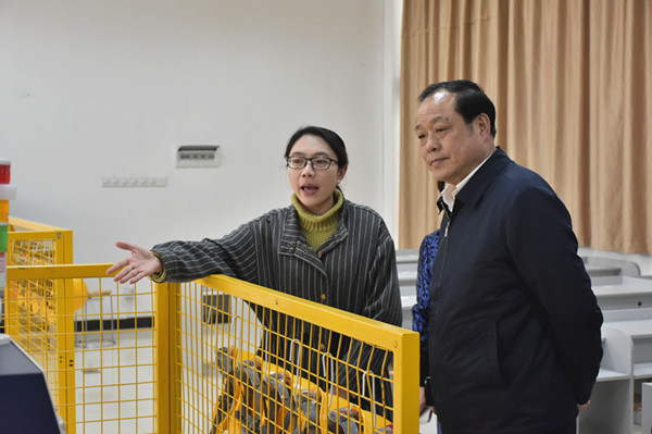 刘传铁一行在校领导的陪同下,先后参观了图书馆、数控实训基地、模拟法庭、大学生创业基地、信科实验大楼、机电实验大楼和体育馆。随后,听取了学校领导的相关工作汇报。周进从办学投入、教学改革、校企合作和学生创新创业等四个方面汇报了学校教育教学情况,并就民办高校教师待遇、科研扶持和校企合作平台建设提出建议。冯向东介绍了学校党委机构建立、组织关系隶属转接、现行组织体系及运行等方面情况,提出省教育厅加强对民办高校党建工作直接指导的希望。