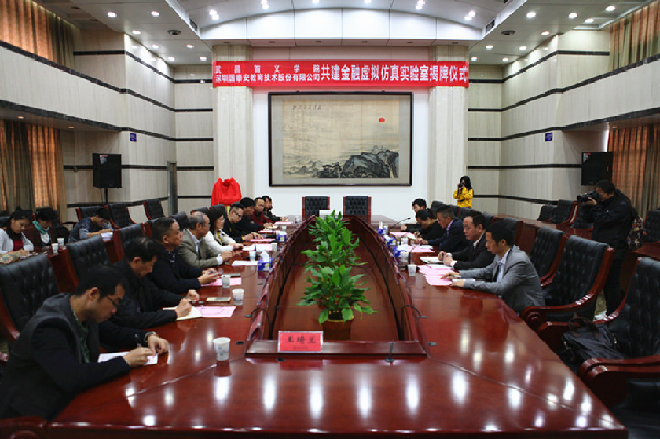 随后,周进与左敏为共建的金融虚拟仿真实验室揭牌,国泰安向学校捐赠教学软件,与会领导合影留念并参观实验室。