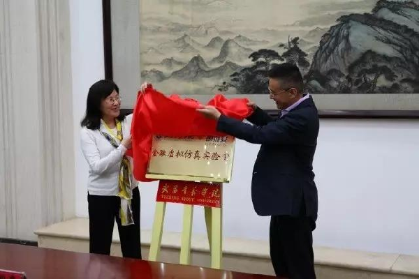 10月11日,学校与深圳国泰安教育技术股份有限公司共建的金融虚拟仿真实验室揭牌仪式隆重举行。校长周进与深圳国泰安教育技术股份有限公司总裁左敏代表双方签订校企战略合作协议,并为实验室揭牌。