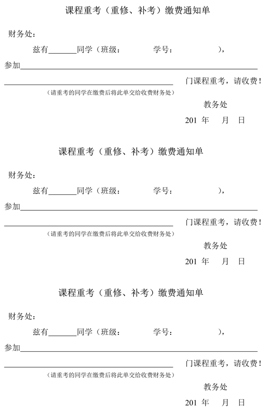 课程重考(重修、补考)缴费通知单
