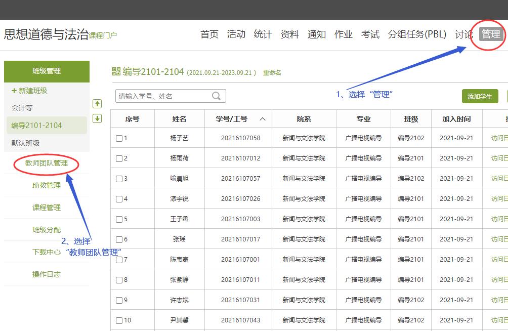 1、问:有两位教师上课的教学班,其中有位教师在超星学习通中看不到该课程和教学班学生名册,是什么原因,该怎么解决?