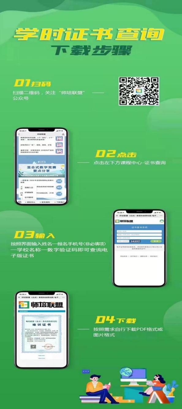 4.学习结束后,请在12月20日下午18:00以后,根据下图所示,按步操作下载学时证书。注意:上传信息以报名手机号为准。