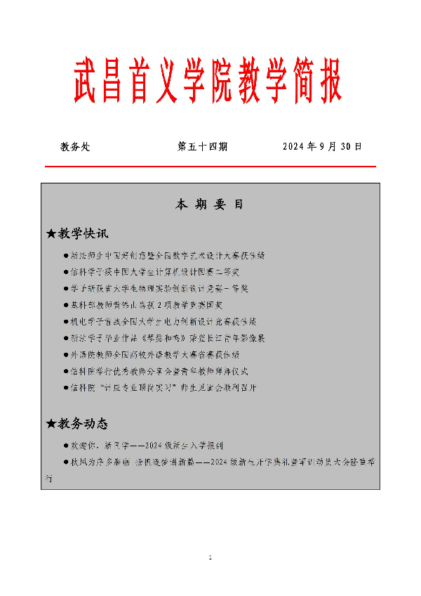 武昌首义学院教学简报(第五十四期)