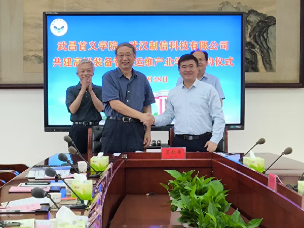 5月28日上午,学校与武汉制信科技有限公司共建高端装备智能运维产业学院签约仪式在行政楼八楼理事会接待厅举行。武汉制信科技有限公司首席执行官黄培、常务副总经理李翔、智能制造教育培训中心主任黄娟,我校校长李崇光,副校长李桂兰、吴波、金国杰出席,信息科学与工程学院院长梁意文、机电与自动化学院常务副院长李硕、校企合作办主任兼教务处副处长周自伦参加。仪式由吴波主持。